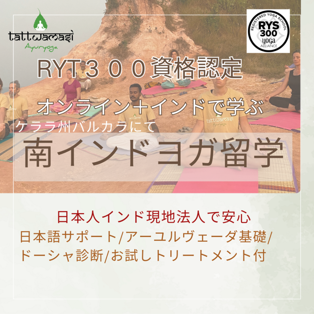 全米ヨガアライアンス認定校のTattwamasi Ayuryogaの修了書が授与されます。