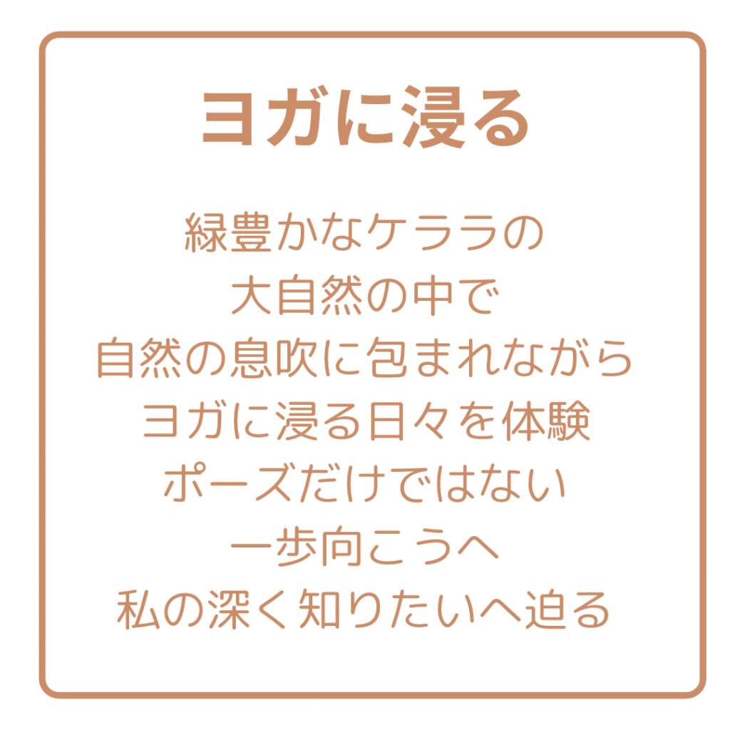 多様な価値観が交差する南インドでの生活を通して、柔軟な感性と国際的な視点を育みます。 - ヨガを通した自己変容の旅