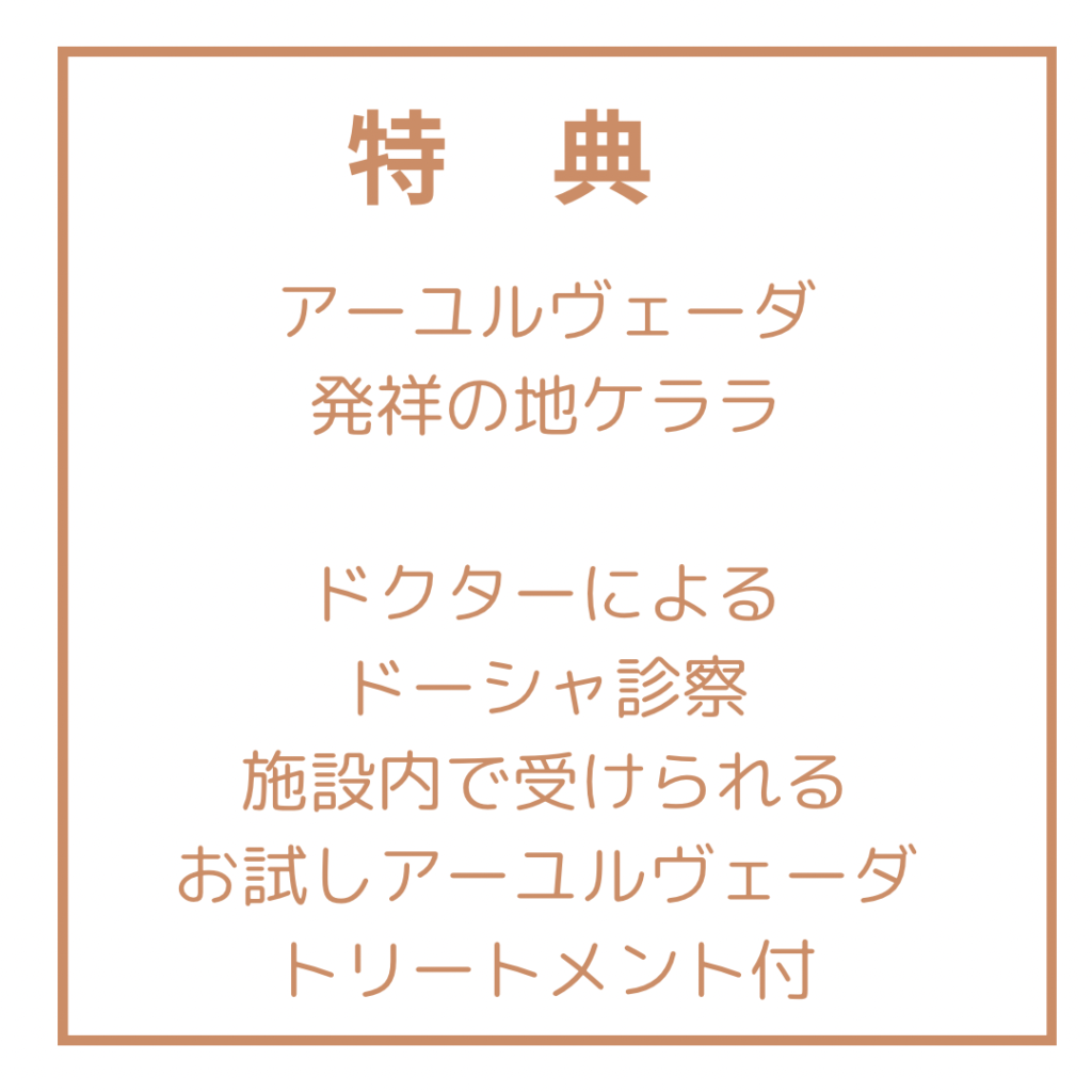 - ご希望の方はアーユルヴェーダトリートメントも受けることができます。