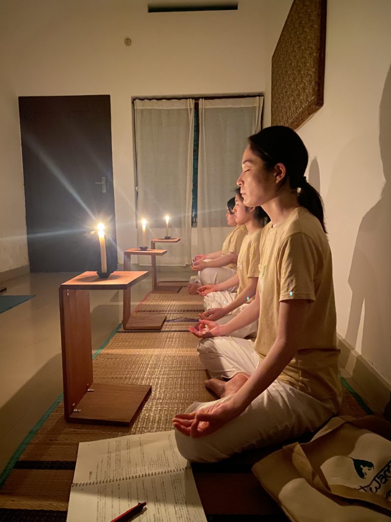 毎日の始まりは瞑想から始まり、呼吸法、アーサナを練習・経験していき、