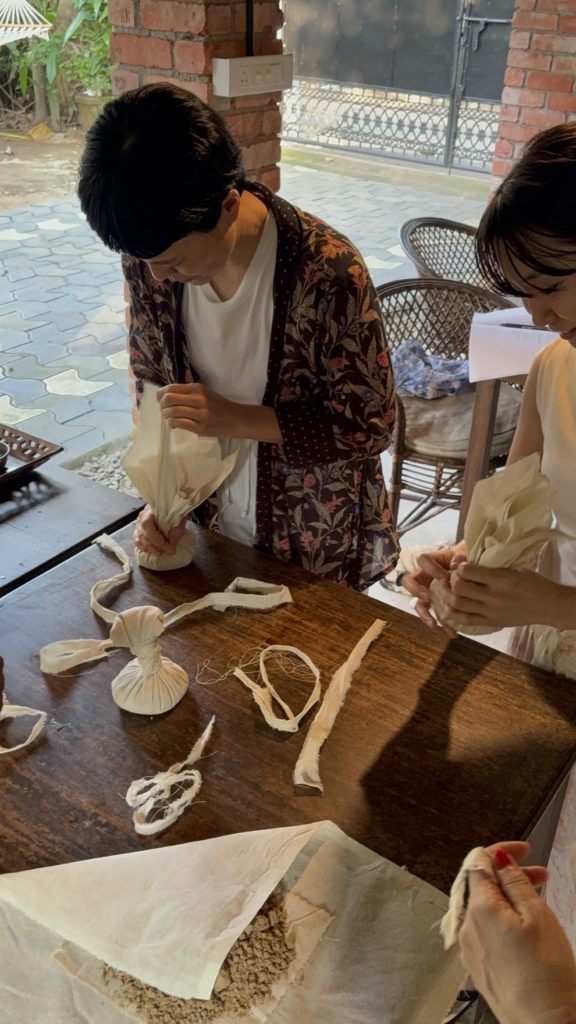 薬用オイルがどのように作られるか、ハーブボールをどう作るか工程を学びます。